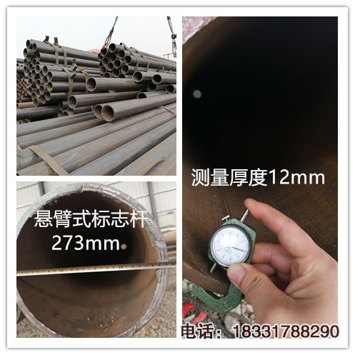 單懸臂式標志桿φ273mm*12mm*8250mm,橫梁φ159mm*8mm*5900mm,經檢測中心現場抽檢結果報告,在厚度、長度、及加筋板尺寸上完全符合國家道路交通安全設施行業標準,達到合格,經許可,可批量生產交通標志桿。