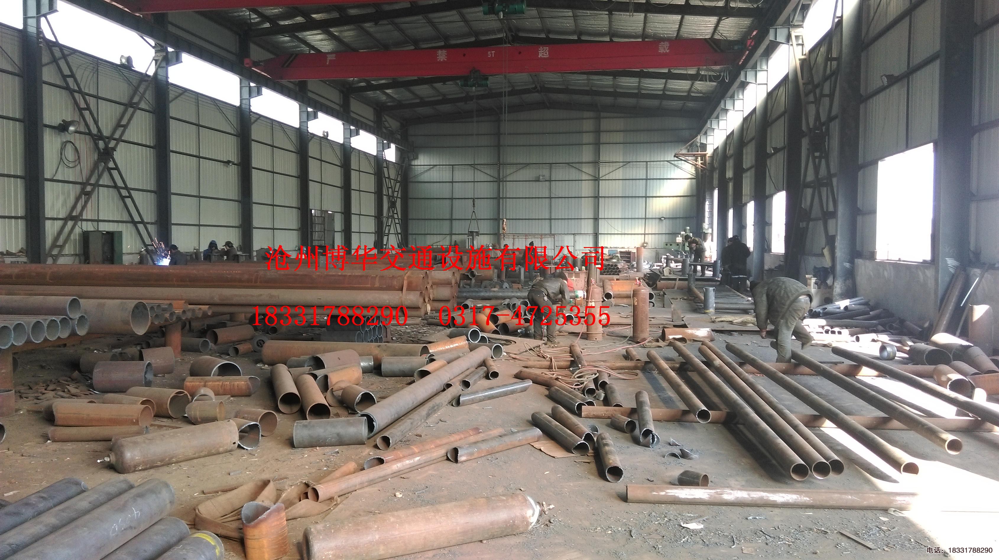 立柱,橫梁及其他外露鋼結構件防腐,采用熱浸鍍鋅處理,鋅附著量不低于600g/m2 ,螺栓等緊固件表面鍍鋅350g/ m2。滄州博華立柱加勁肋的外棱均應倒銳,鋼構件均去毛刺。博華交通鋼管之間的焊接為相貫焊;肋板處為雙面焊,其余為角焊,焊縫寬度為5-8mm。