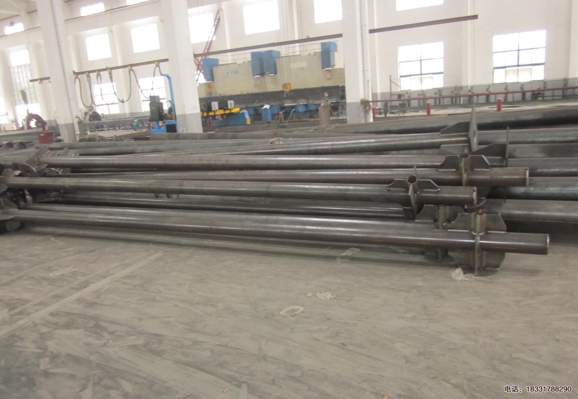 標志桿未成品:標牌立桿加工前需要對原材料(鋼材)進行質檢,只有符合圖紙材質要求達到Q235,才能進行下料加工,組裝焊接后,焊縫質量要符合道路交通標志、城市道路交通標志標線要求,最后一步,標志桿需要人工機械設備進行焊縫、焊渣清理打磨光滑,才能進行熱鍍鋅。